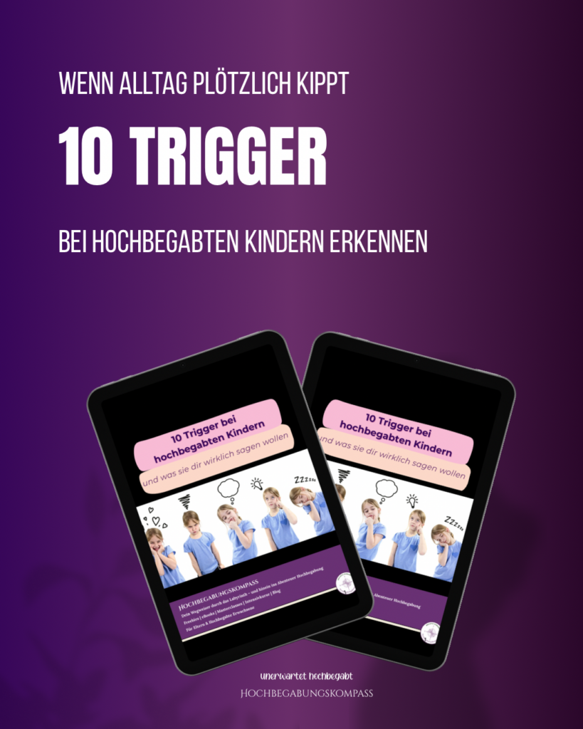 Dieses Freebie hilft dir, typische Auslöser im Alltag hochbegabter Kinder zu erkennen.